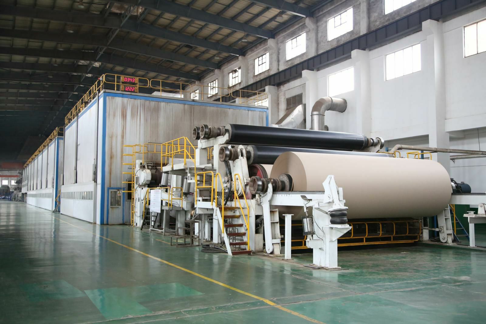 PM5造纸生产线,纸机是美卓(芬兰)制造的先进造纸设备,幅宽6.6米,设计车速1200米/分,目前运行最高车速已达1250米/分。主要生产90-220克的挂面箱板纸,年产量45万吨,带领江南登陆入口-江南online(中国)开启了包装纸生产的新纪元。
